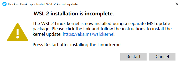 [参考:安装 Docker Desktop 报错 WSL 2 installation is incomplete.](https://blog.csdn.net/qq_39611230/article/details/108625840)