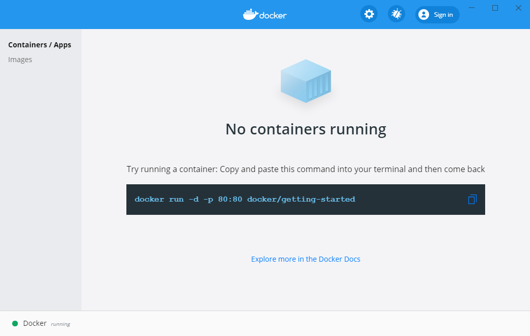 1. 打开Docker可以看到中间有串代码,复制并在cmd中执行,等待下载完成