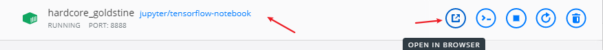 22a7a666831f jupyter/tensorflow-notebook "tini -g -- start-no…" 21 seconds ago Up 21 seconds 0.0.0.0:8888->8888/tcp hardcore_goldstine