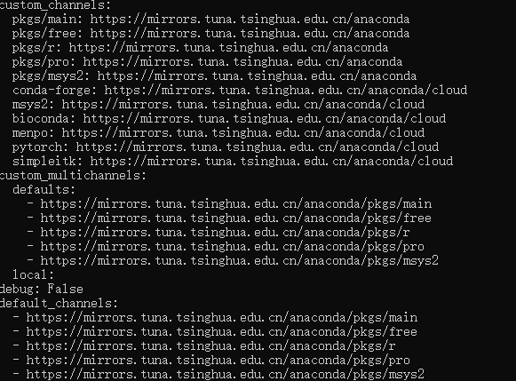 执行`conda config --show` 可以看到我们目前用的是官方源