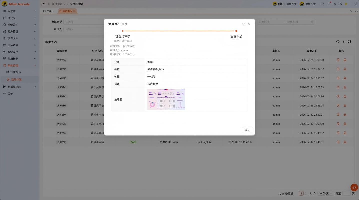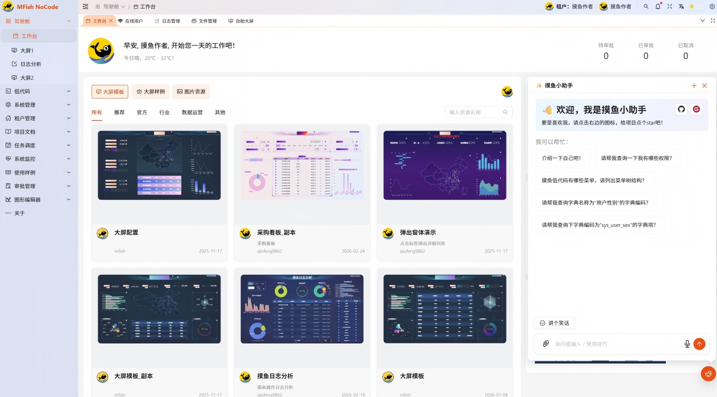 # mfish-nocode **Repository Path**: guopeng075/mfish-nocode ## Basic Information - **Project Name**: mfish-nocode - **Description**: 摸鱼低代码平台,是一款致力于让开发像摸鱼一样轻松的低代码/无代码平台。首创微服务单体服务一体化架构。基于SpringBoot4、Spring Ai、Vue3等最新前后端技术栈。已用于多个成熟项目,学习和实战两不误。我们希望打破技术门槛,让程序员和非程序员都能快速构建业务系统,提升效率,释放创造力。 - **Primary Language**: Java - **License**: Apache-2.0 - **Default Branch**: main - **Homepage**: https://www.mfish.com.cn - **GVP Project**: No ## Statistics - **Stars**: 0 - **Forks**: 398 - **Created**: 2026-03-26 - **Last Updated**: 2026-03-26 ## Categories & Tags **Categories**: Uncategorized **Tags**: None ## README # 摸鱼低代码平台后端 [](http://www.mfish.com.cn) [](https://github.com/mfish-qf/mfish-nocode/blob/main/LICENSE) [](https://github.com/mfish-qf/mfish-nocode/releases/tag/v2.0.0) [](https://github.com/mfish-qf/mfish-nocode) [](https://github.com/mfish-qf/mfish-nocode) [](https://gitee.com/qiufeng9862/mfish-nocode/stargazers) [](https://gitee.com/qiufeng9862/mfish-nocode/members) ## 🧱架构图  ## 🐟项目介绍 摸鱼低代码平台,是一款致力于 **让开发像摸鱼一样轻松** 的低代码/无代码平台。我们希望打破技术门槛,让程序员和非程序员都能快速构建业务系统,提升效率,释放创造力。 这不仅是程序员偷闲时的效率神器,更是职场小白的建站利器,甚至是领导画原型的秘密武器! ## 🧠我们的愿景 打造一个真正让人省心省力的开发平台: 对程序员来说,是加速上线、复用逻辑、快速交付的开发利器 对业务人员来说,是所见即所得、拖拖拽拽就能搞定的效率工具 一句话:让懂技术的跑得更快,让不懂技术的也能跑起来! ## 🚀核心特点 低代码 + 无代码统一平台:灵活切换,按需使用 即可快速生成业务代码,也可以无代码生成API接口和可视化大屏 单实例微服务一体化架构:支持单体服务和微服务两种开发部署模式,一套代码解决两种架构,开箱即用 权限解耦:企业级的权限控制,安全可靠与业务代码完全解耦,通过注解控制权限 ## 🎯适用场景 企业内部系统搭建(ERP、CRM、OA等) 快速原型设计与验证 数据展示看板等轻应用开发快速集成 ## 💡技术栈 * 后端基于SpringBoot4, Spring Cloud Alibaba,实现微服务、单体服务代码一体化架构 * 前端采用VUE3+AntDesign * 注册中心、配置中心采用nacos(作为单体服务时无需使用注册中心) * 支持oauth2统一认证接入,支持多种登录方式(账号密码登录、手机短信登录、微信扫码登录) * 支持租户切换,租户可以自己管理自己的人员、组织、角色 * 支持可视化配置查询API接口,后端自动生成SQL执行 * 支持注解方式进行数据权限控制,与业务代码完全解耦 ## 🛡️安全报告 [](https://www.murphysec.com/console/report/1672256253122600960/1796428877999906816) ## 🌐前端源码地址 [](https://github.com/mfish-qf/mfish-nocode-view) [](https://gitee.com/qiufeng9862/mfish-nocode-view) [](https://gitcode.com/mfish-qf/mfish-nocode-view.git) ## 🌐后端源码地址 [](https://github.com/mfish-qf/mfish-nocode) [](https://gitee.com/qiufeng9862/mfish-nocode) [](https://gitcode.com/mfish-qf/mfish-nocode.git) ## 📖文档地址 + [文档地址](http://www.mfish.com.cn) + [在线预览](http://app.mfish.com.cn:11119) + [阿里云折扣场](https://www.aliyun.com/minisite/goods?userCode=ee6ukuyy) + [腾讯云折扣场](https://curl.qcloud.com/ZTJbN0ik) ## 🎭平台交流 ### 微信:  ### QQ群: [](https://qm.qq.com/q/zQdI2rMsj8) 点击链接加入群聊【摸鱼低代码2群】 [](https://jq.qq.com/?_wv=1027&k=0A2bxoZX) 点击链接加入群聊【摸鱼低代码1群】(已满) ## 🧩功能模块 ``` ├─ChatGpt │ ├─聊天 ├─驾驶舱 │ ├─工作台 ├─低代码 │ ├─数据源 │ ├─代码生成 │ ├─自助API │ └─自助大屏 ├─系统管理 │ ├─菜单管理 │ ├─组织管理 │ ├─角色管理 │ ├─帐号管理 │ ├─字典管理 │ ├─分类管理 │ ├─日志管理 │ ├─文件管理 │ ├─在线用户 │ ├─应用管理 │ └─数据库 ├─租户管理 │ ├─租户配置 │ ├─个人信息 │ ├─租户信息 │ ├─租户组织 │ ├─租户角色 │ ├─租户人员 ├─系统监控 │ ├─监控中心 ├─任务调度 │ ├─任务管理 │ ├─任务日志 ├─项目文档 │ ├─接口地址 │ ├─Github地址 │ ├─Gitee地址 │ ├─AntDesign文档 │ └─Vben文档 ├─多级目录 ├─图形编辑器 ├─引导页 ├─关于 └─其他模块 └─更多功能开发中... ``` #### 大屏配置教学 [1.自助大屏配置系列-画布操作](https://www.bilibili.com/video/BV14YLbz7ESh/?share_source=copy_web&vd_source=0cf425790dc7750eb5d8a4d1c0b028f4) [2.自助大屏配置系列-画布配置](https://www.bilibili.com/video/BV15CLnzBEWN/?share_source=copy_web&vd_source=0cf425790dc7750eb5d8a4d1c0b028f4) [3.自助大屏配置系列-数据绑定](https://www.bilibili.com/video/BV1Mr5KzSE6V/?share_source=copy_web&vd_source=0cf425790dc7750eb5d8a4d1c0b028f4) [4.自助大屏配置系列-动画绑定](https://www.bilibili.com/video/BV1K1JNzdEG1/?share_source=copy_web&vd_source=0cf425790dc7750eb5d8a4d1c0b028f4) [5.自助大屏配置系列-多屏联动](https://www.bilibili.com/video/BV1kvjHzdEok/?share_source=copy_web&vd_source=0cf425790dc7750eb5d8a4d1c0b028f4) [6.自助大屏配置系列-动态显隐](https://www.bilibili.com/video/BV1CkrNBWEsj/?share_source=copy_web&vd_source=0cf425790dc7750eb5d8a4d1c0b028f4) [7.自助大屏配置系列-表单查询](https://www.bilibili.com/video/BV1efzsB4Ebq/?share