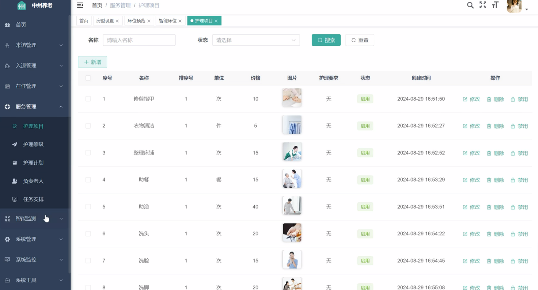 3. **护理任务调度**:对护理人员任务进行智能派发和跟踪;