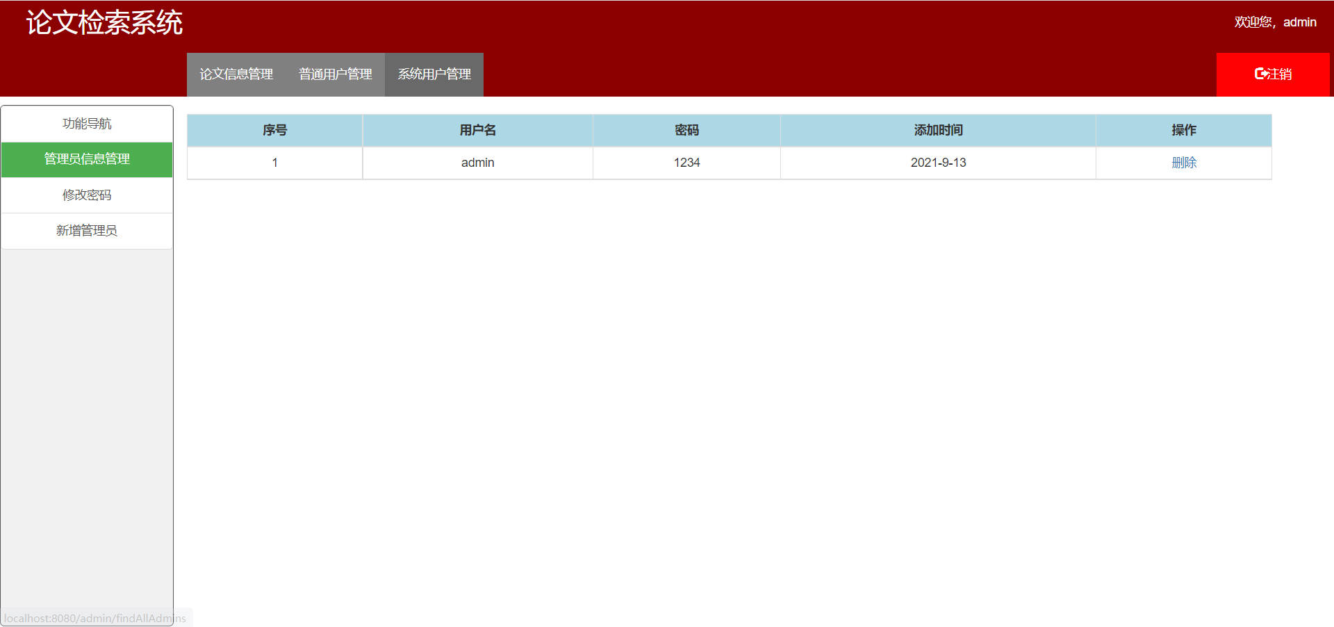 #### 系统管理员的论文检索界面: